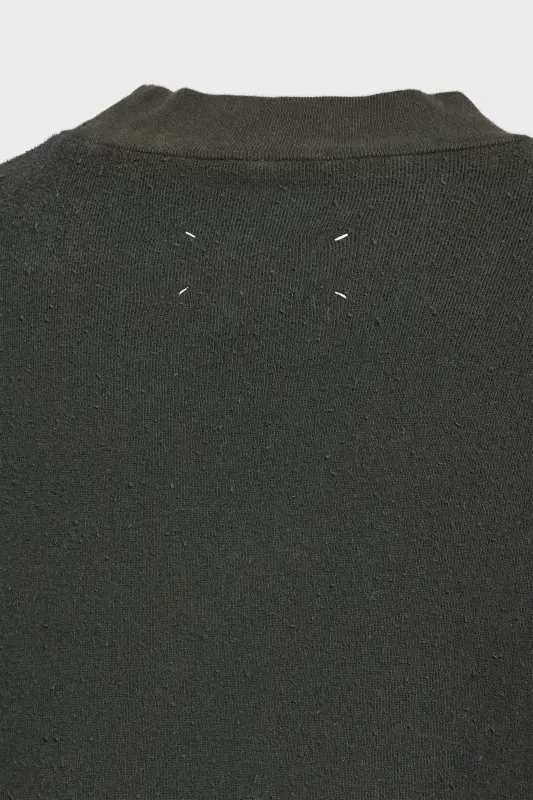 Made in cotton with a distressed finish, the oversized T-shirt has a crew-neck and features the stamped MM logo to the side. The neckline is frayed to further the lived-in look. Maison Margiela's signature, the four stitches, appear at the back; the opposite of a label.