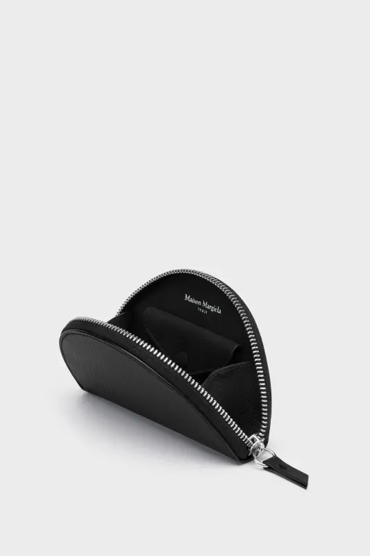 The accessory comes in saffiano leather with a zip closure. Maison Margiela’s signature Four stitches appear on the front; the opposite of a label.
