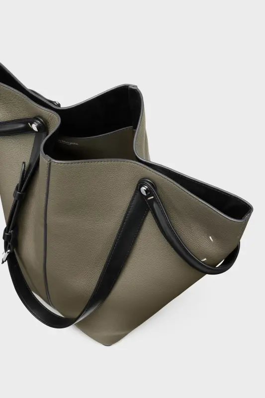 The Maison launches the Dress-age handbag for SS25, crafted from soft pebbled calfskin. With an equestrian spin, the medium handbag features classic leatherwork and refined lines, combining unconscious glamour with gestural design. It follows a trapezoid shape with contrast dual-wear strap detail. The studded base allows the bag to stand, and the inner is adorned with the logo. Maison Margiela's signature, the four stitches, appear at the back; the opposite of a label.