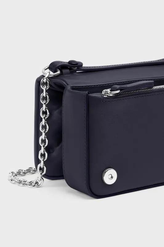 A compact evolution of the Glam Slam, this wallet bag channels the Maison’s idea of unconscious glamour through a quilted, pillow-soft exterior. Its structured form opens to multiple compartments, secured by magnetic fastenings and a polished zip. The chain strap and numeric logo tag add contrast — elegant, industrial, and unexpected.