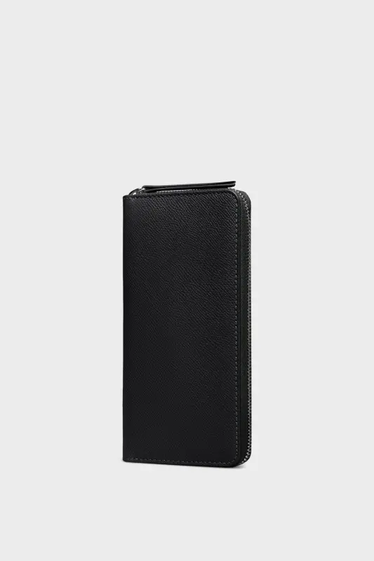 Crafted from grainy leather, the zip-around wallet has an inner zipped coin purse and card holders, with inner logo. Maison Margiela's signature, the four stitches, appear at the back; the opposite of a label.