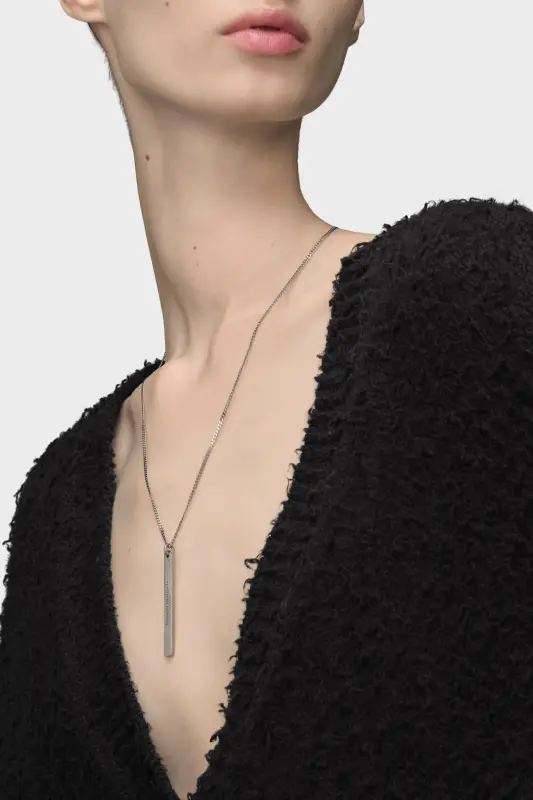 Crafted from semi-polished sterling silver, the necklace presents a long, slim pendant engraved with the Maison Margiela logo.