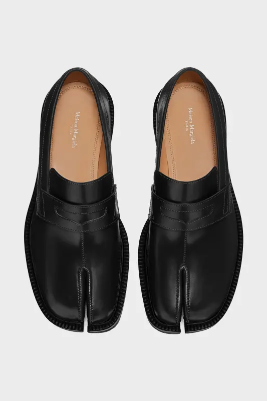 Maison Margiela Mens Black Leather Tabi Loafers Black
