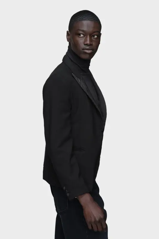This minimal wool blazer is cut with a peak lapel, single-breasted closure and three external pockets. It features considered proportions, crafted using the Maison’s Shrink to Fit technique, the fabric is boiled to subtly reshape its form. Maison Margiela’s signature, the four stitches, appear at the back; the opposite of a label.