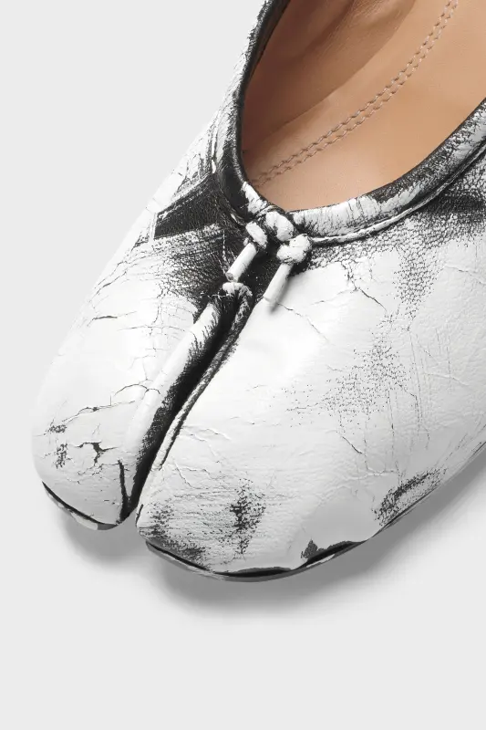 Maison Margiela White Hand-painted Heeled Tabi Ballerina Black and White
