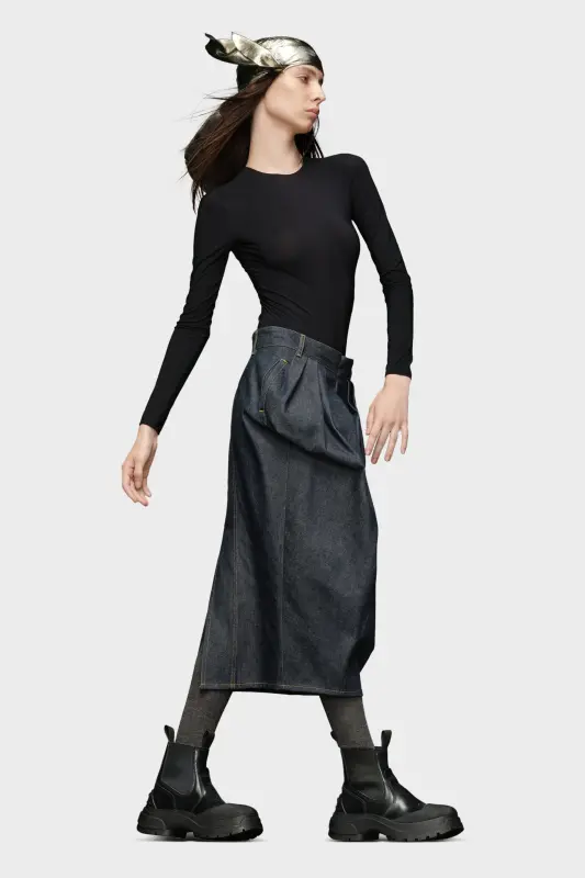 The long-sleeved bodysuit with a crew-neck comes in technical stretch jersey for a minimal, seamless finish.