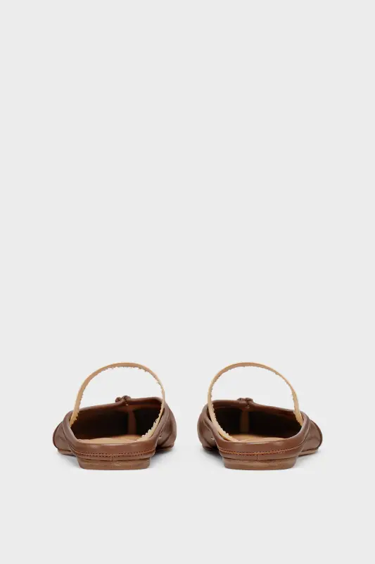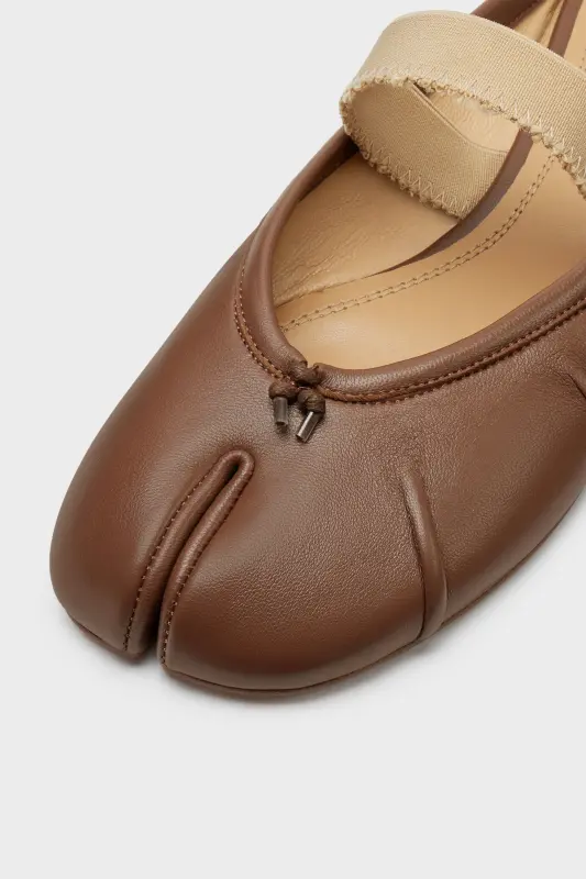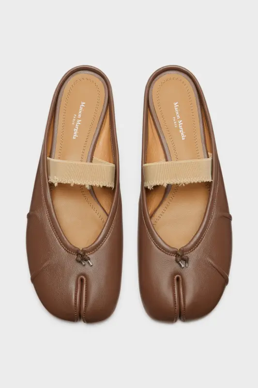 Maison Margiela Womens Brown Leather Tabi Elastic Band Mule Warm coffee and nude